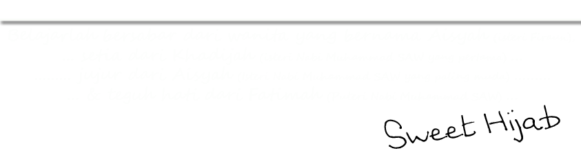 Pertama-tama sekali Alhamdulillah syukur dipanjatkan kepada Allah swt kerana memberi keizinan-Nya Blog sweet hijab diwujudkan. Selawat dan salam ke atas Baginda Nabi Muhammad saw, para keluarga baginda, para sahabat baginda khususnya.